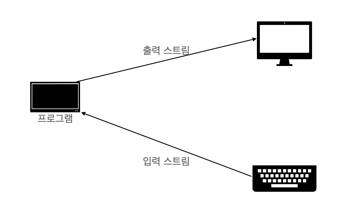 프로그램 상에서 키보드로 입력받아 모니터로 출력할 때 이를 연결해 주는 매개체를 스트림 이라고 한다.