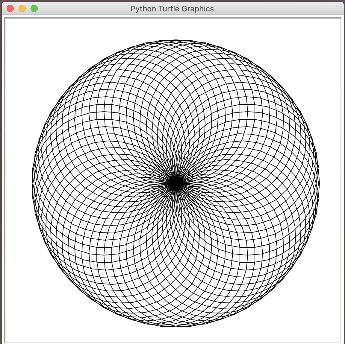 터틀에서 원을 그릴 때는 circle() 함수를 사용하면 된다. 괄호 안에는 반지름의 길이가 들어간다.