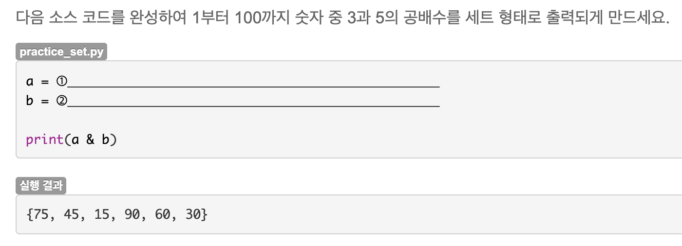 1부터 100까지 range()로 만들고 그 중 3의배수인 것과 5의 배수인 것을 각 세트에 넣는다.