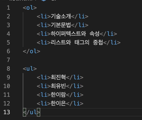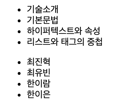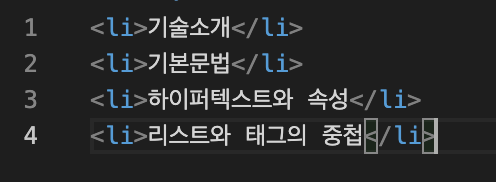 <li> 태그를 사용하면 각각의 항목들이 시각적으로 구분되게 사용할 수 있다.