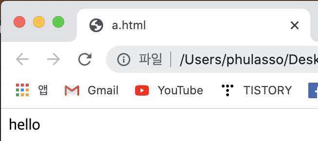 텍스트 편집기에 입력된 내용을 웹 브라우저가 화면에 표시해주고 있다.