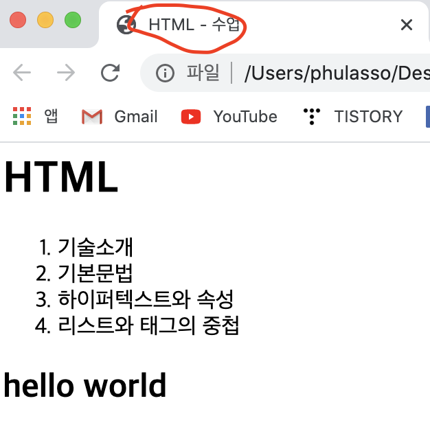 html 문서의 위 두줄은 본문과는 관계없는 부가적인 내용들을 담고 있고, 그 아래부터는 본문의 내용들을 담고 있다.