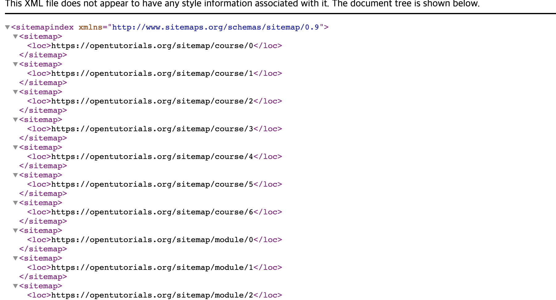 opentutorials의 sitemap 페이지를 보면 다음과 같다.