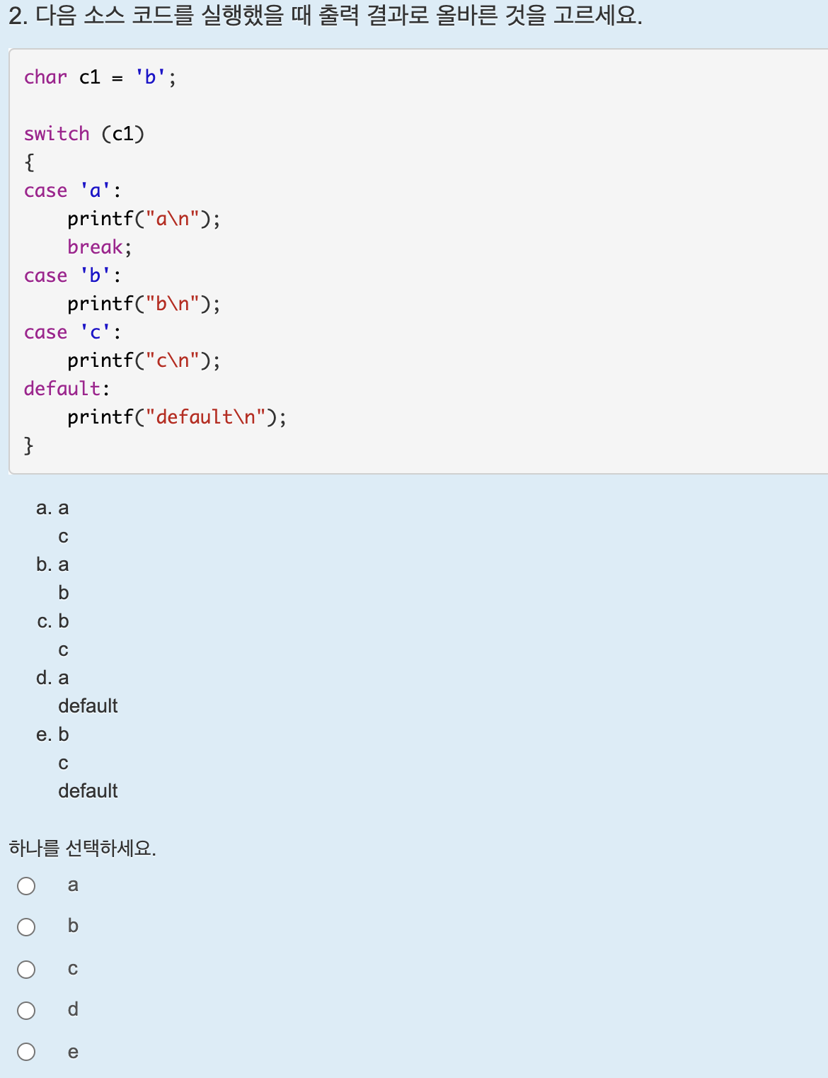 정답은 a, d, e이다.