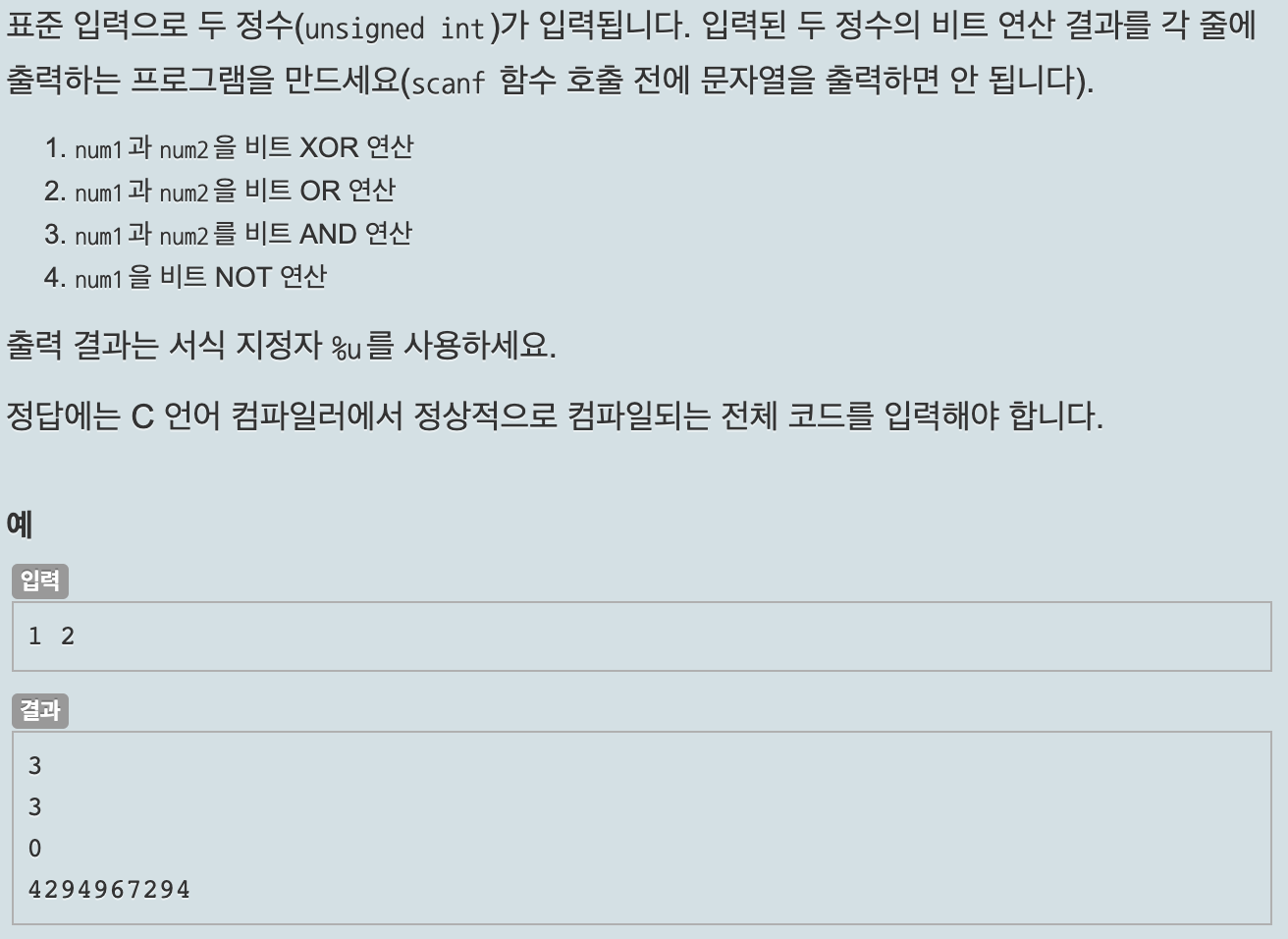 printf("%d\n", num1 | num2); // 0000 0011
