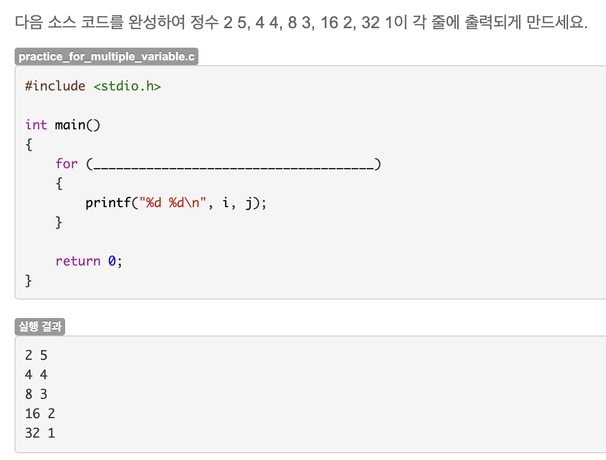 정답은 int i = 2, j = 5; i <= 32; i *= 2, j-- 이다.
