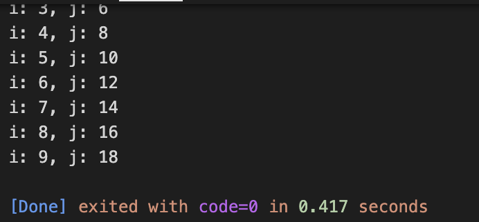 printf("i: %d, j: %d\n", i, j);