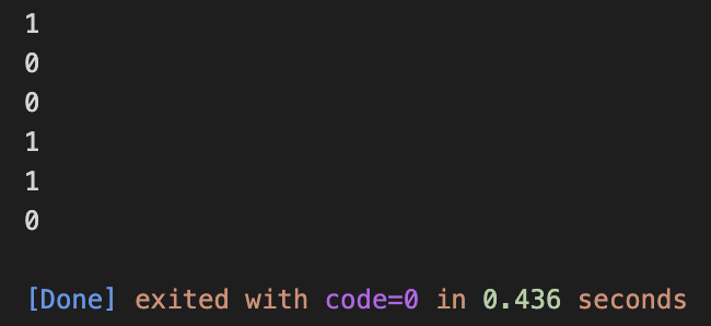 printf("%d\n", false || false);