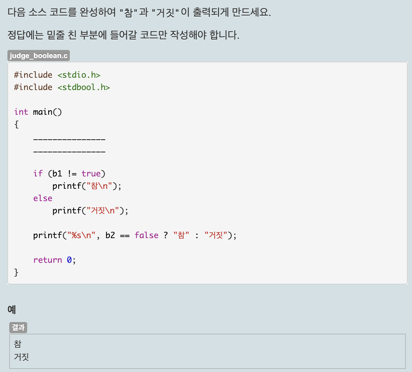 정답은 #include <stdbool.h>, b1, b2 이다.