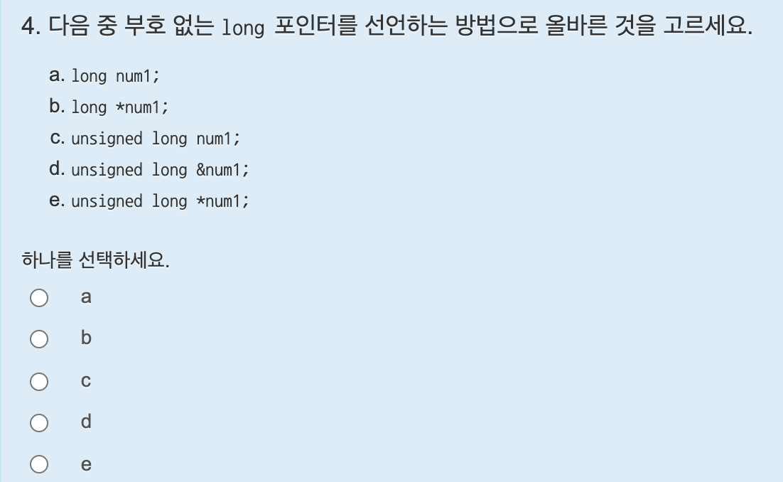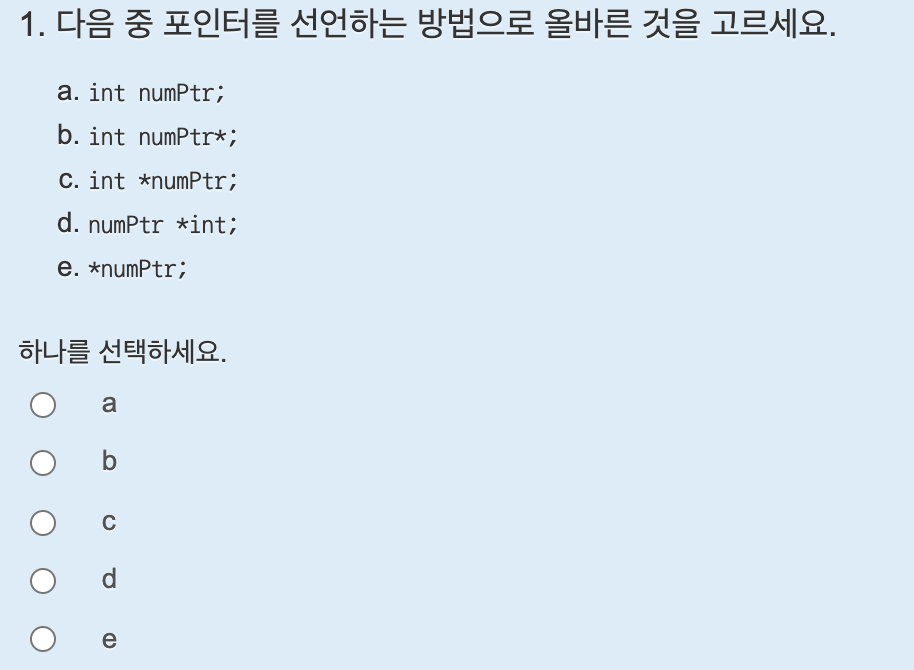 C에서 사용할 수 있는 모든 자료형은 포인터로 만들 수 있다.