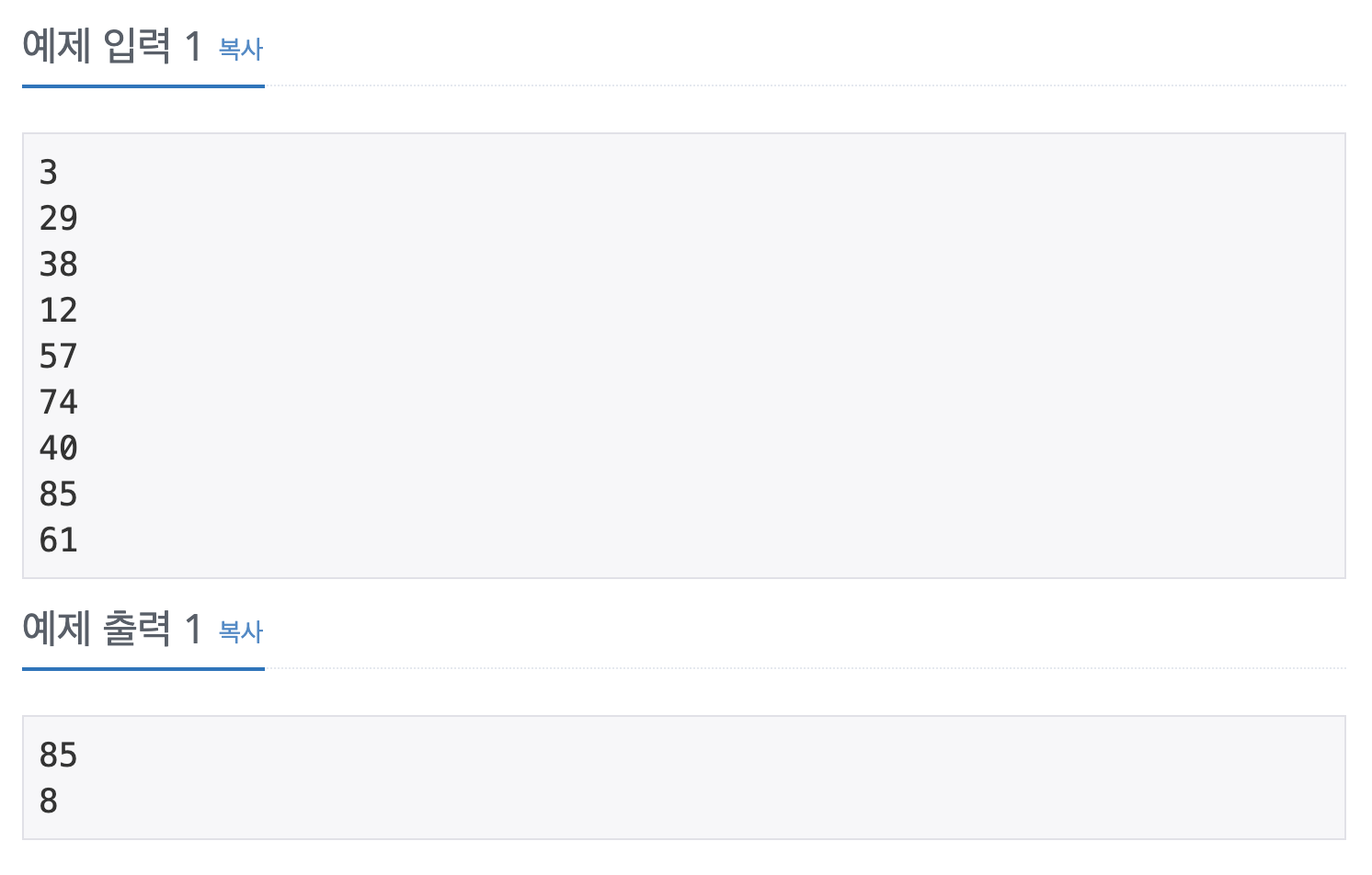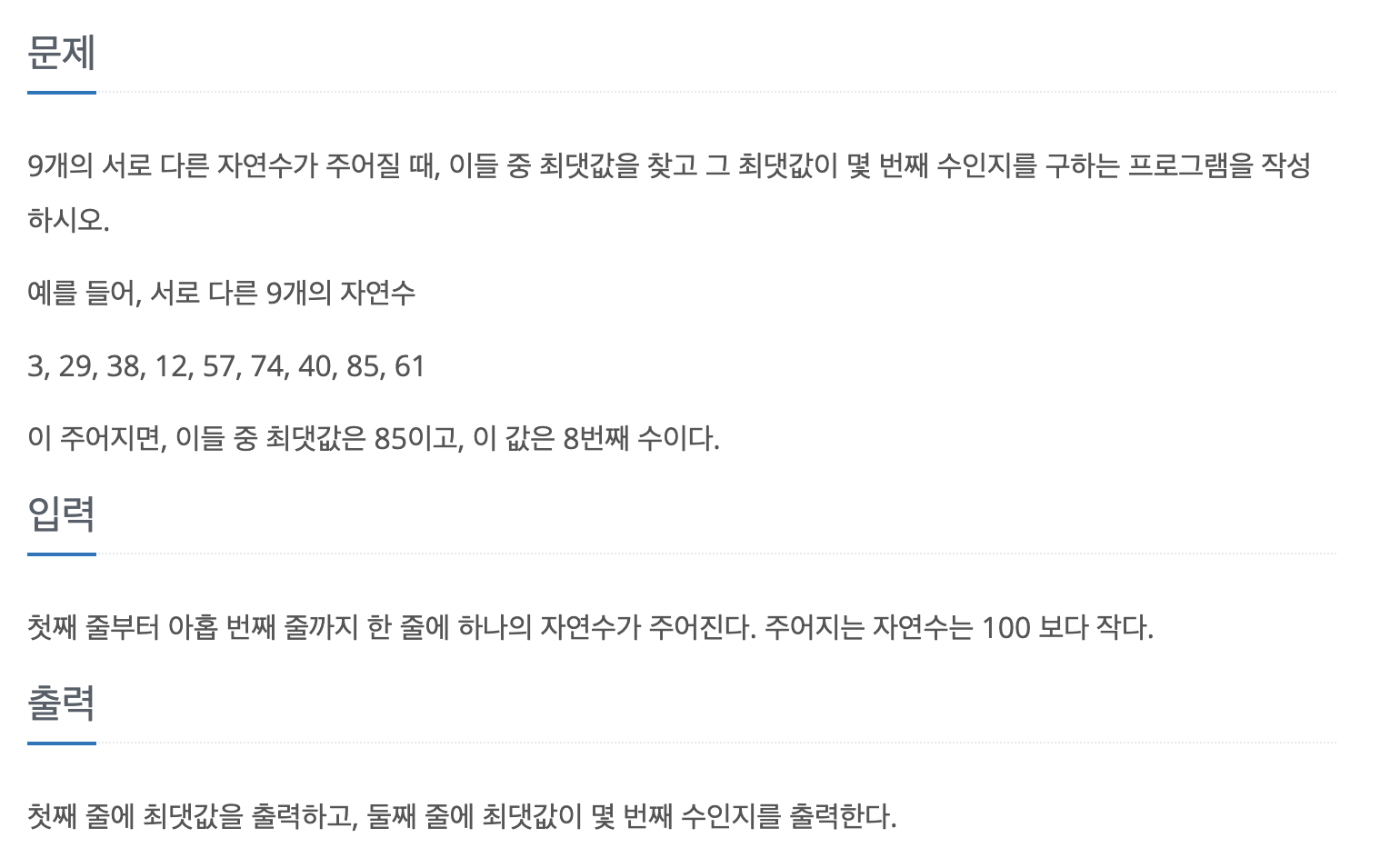 반복문이 끝나면 max값과 인덱스는 0부터 시작하기 때문에 loc + 1을 출력한다.