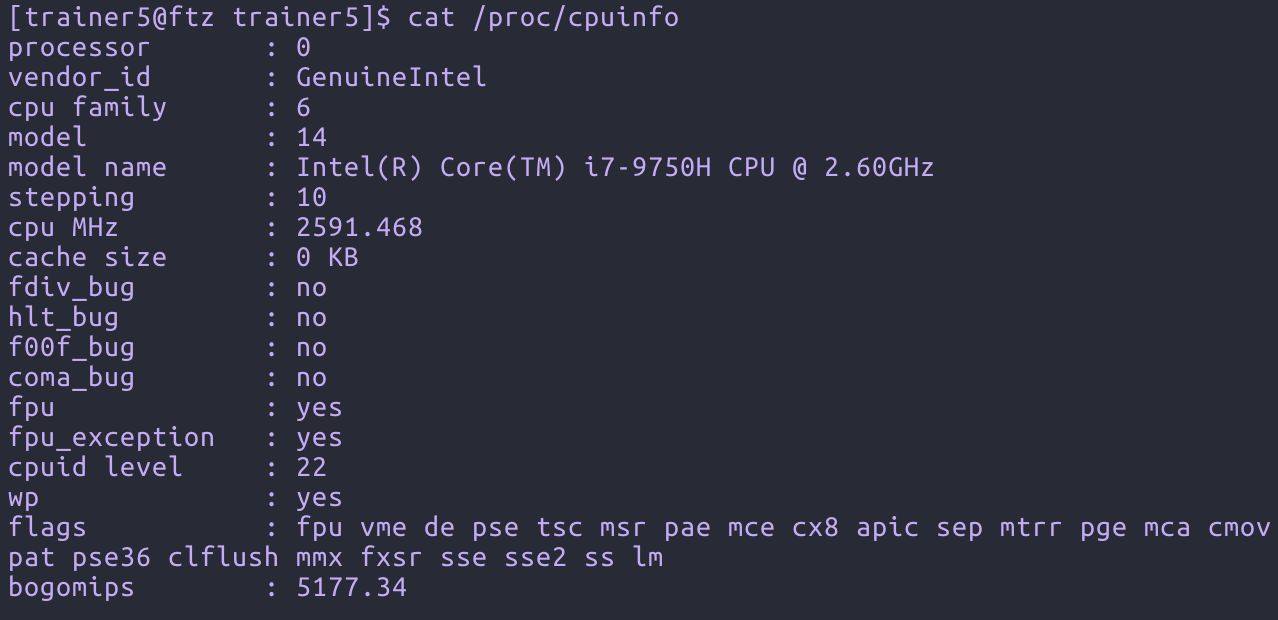 cat명령어로 /proc/cpuinfo를 확인하면 서버의 cpu정보를 확인할 수 있다.