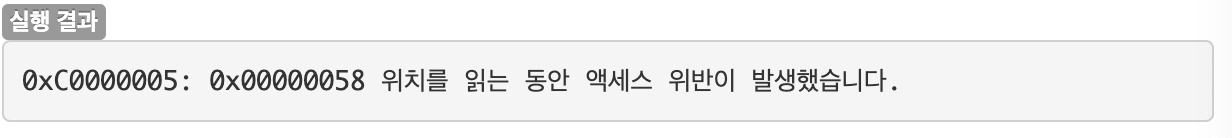 문자열 포인터를 선언한 뒤 scanf 함수로 입력 값을 문자열 포인터에 저장하고 실행하면 에러가 발생한다. 이미 할당된 문자열 포인터에 저장된 메모리 주소는 읽기만 할 수 있고, 쓰기가 막혀있기 때문이다.