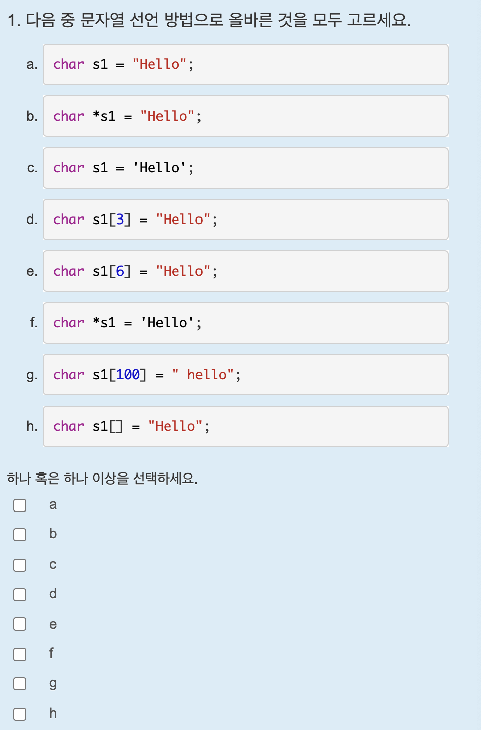 정답은 b,e,g,h이다.