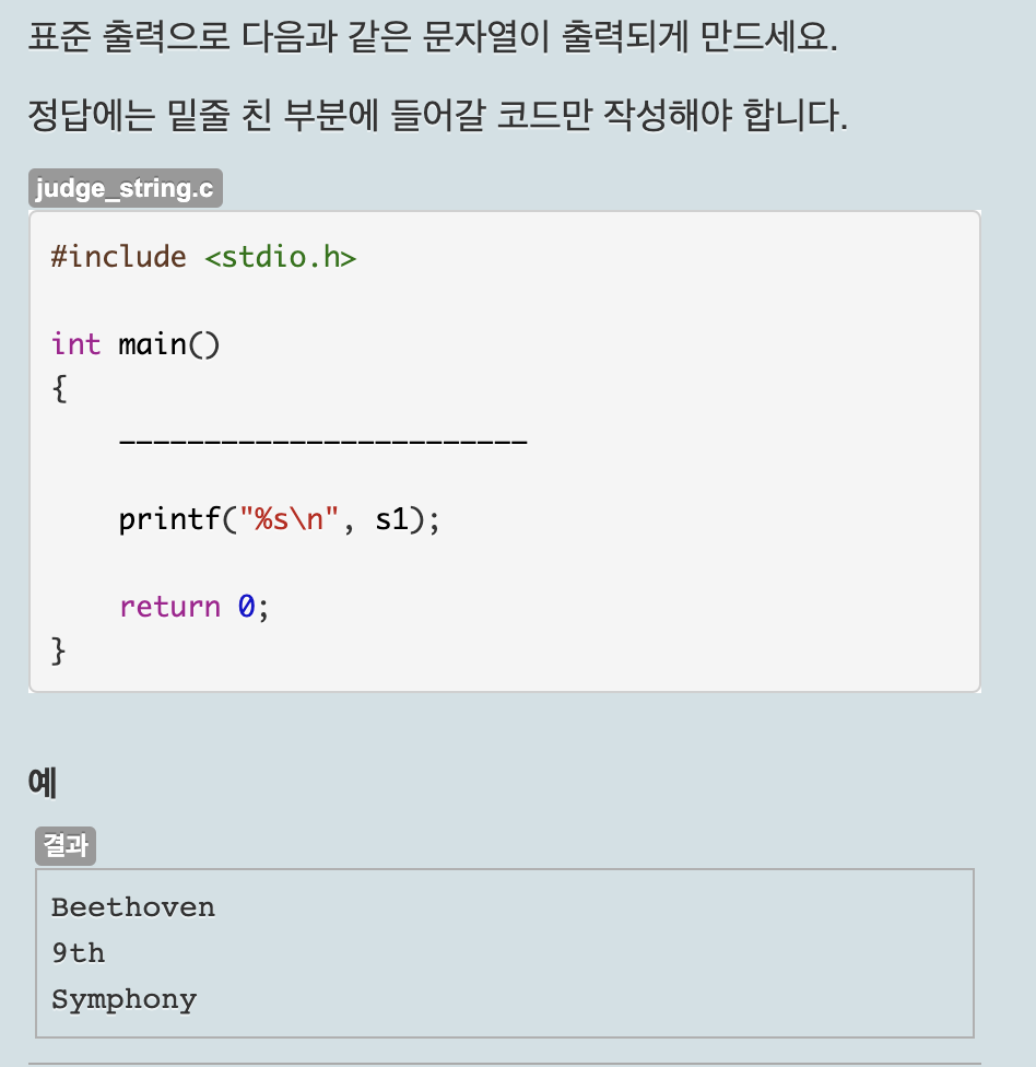 문자열은 ""(큰따옴표)로 묶어야 하며 문자열을 출력할 때는 서식지정자 %s를 사용해야 한다.