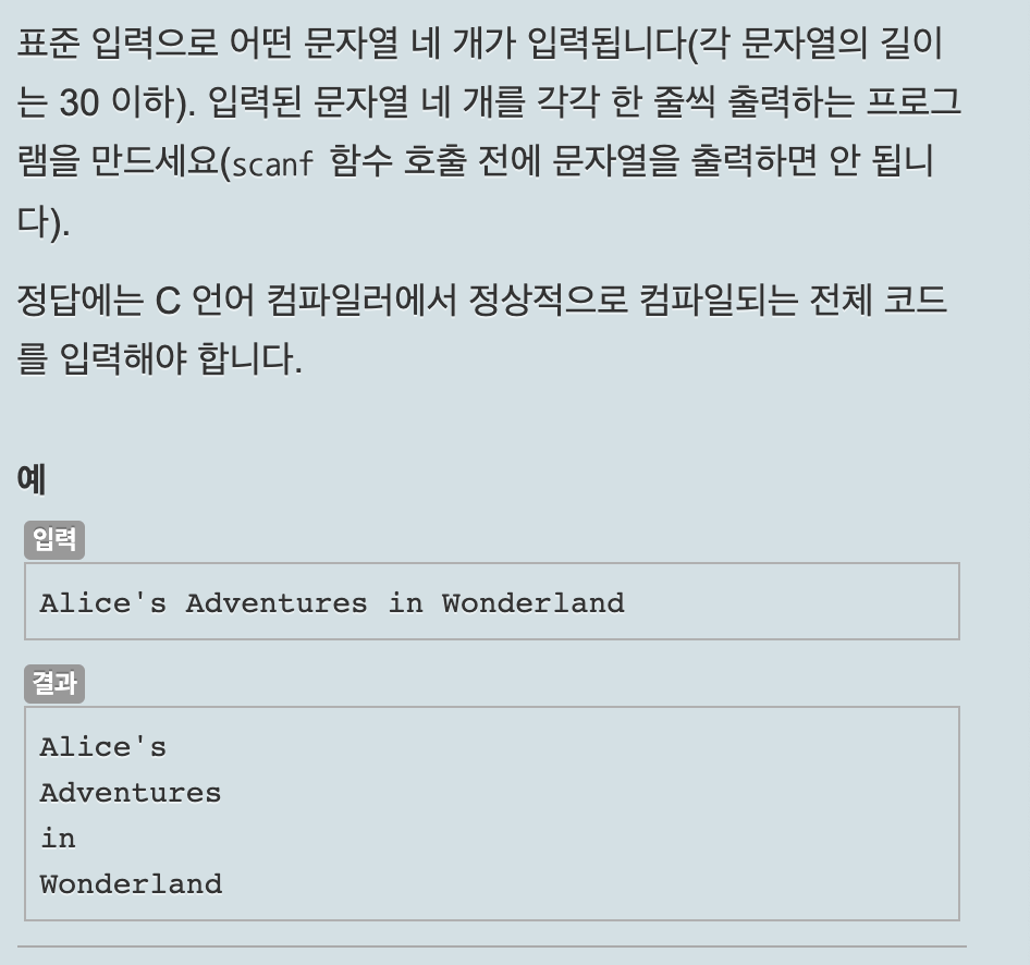 정답은 scanf("%s %s %s", s1, s2, s3); 이다.