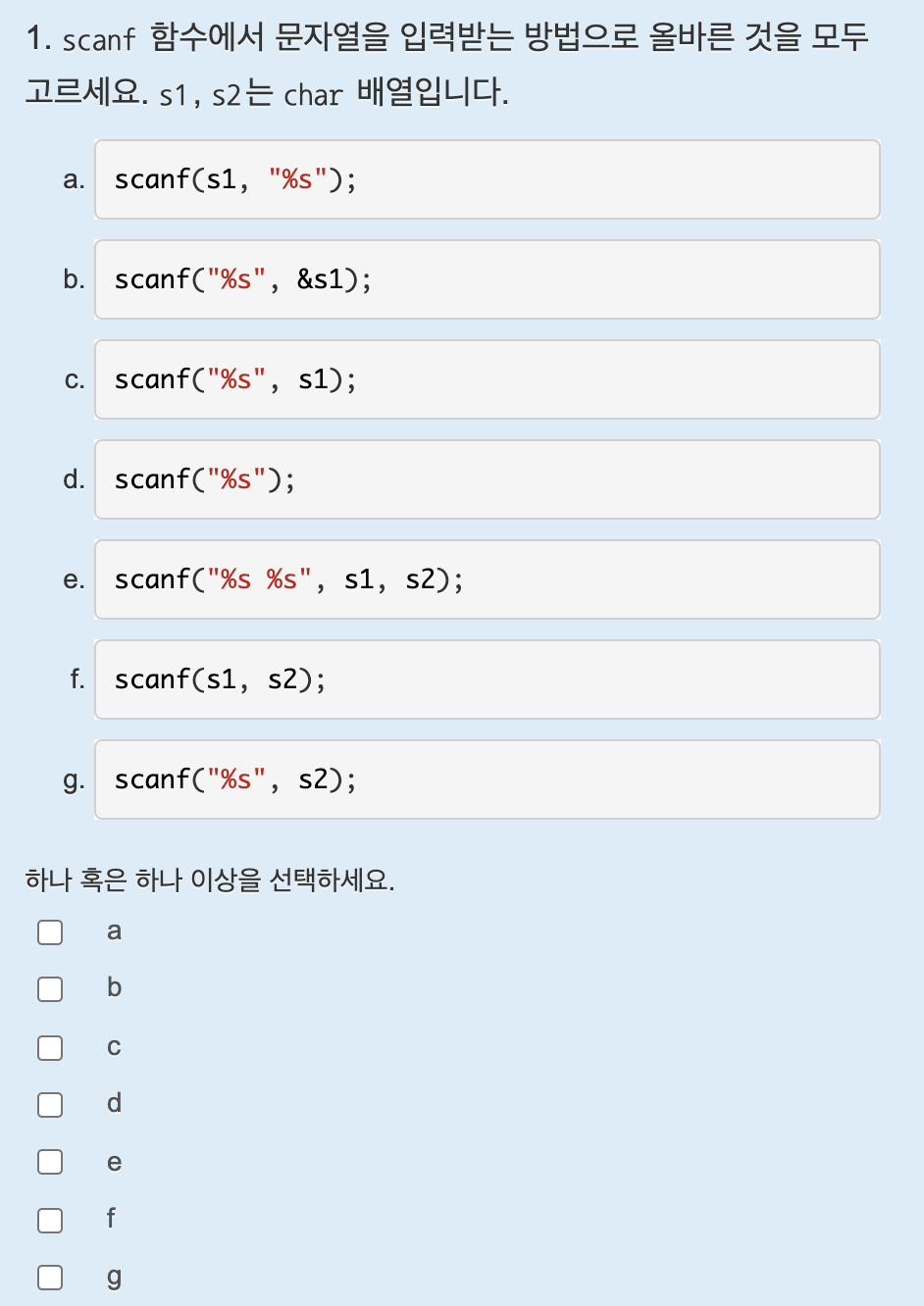 정답은 scanf("%s", s1); 이다.