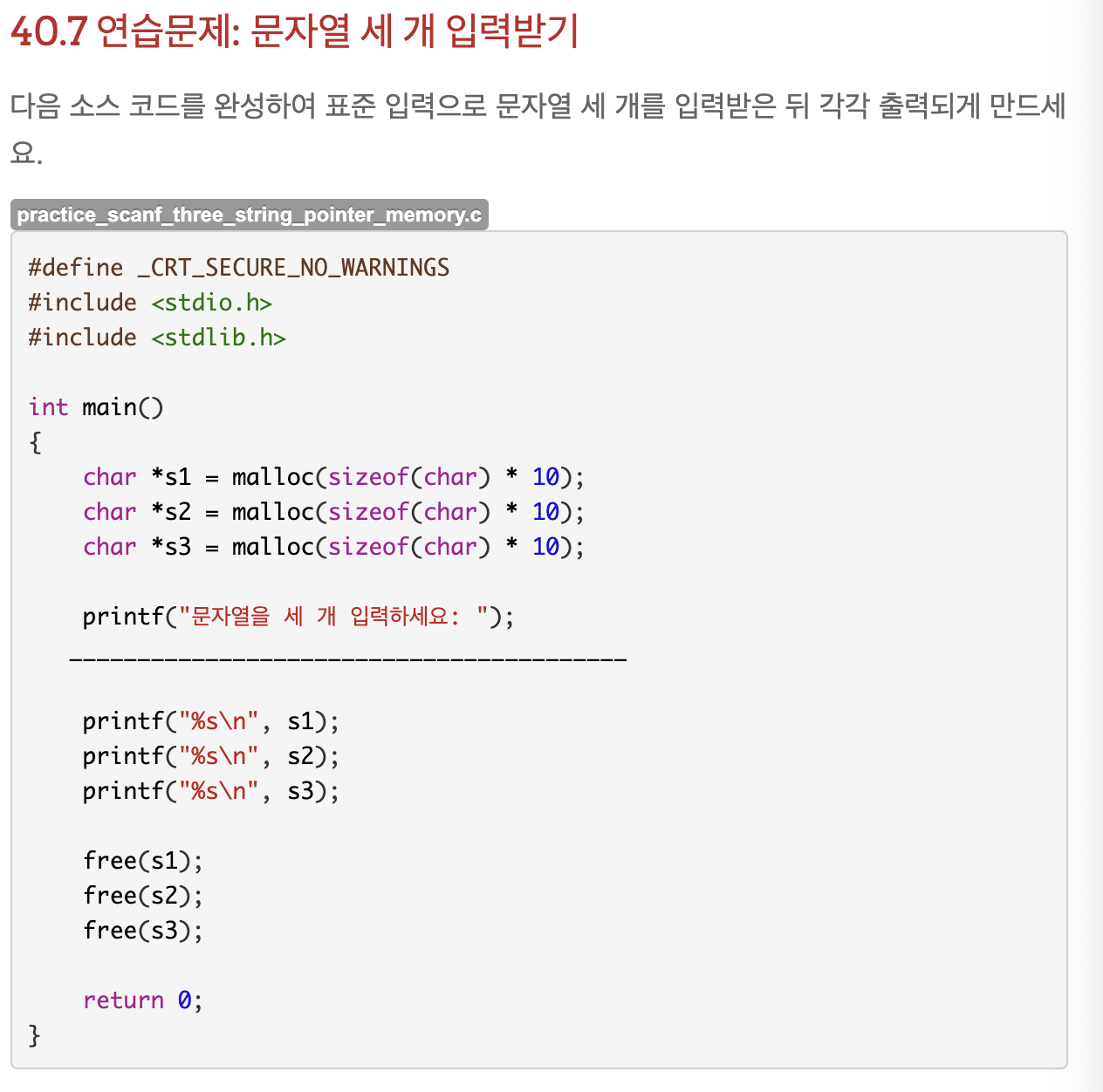 40.6 연습문제 : 입력받은 문자열을 동적 메모리에 저장하기