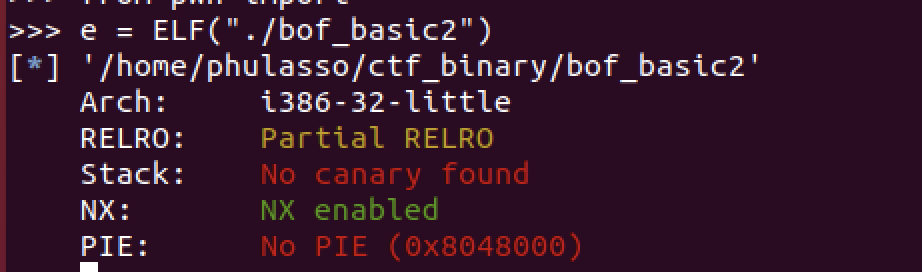elf 바이너리를 넣어 elf파일에 적용되어있는 보호기법, plt, got, 아키텍쳐 등의 정보를 확인할 수 있다.