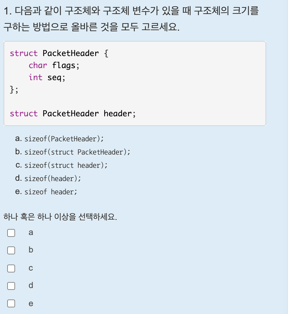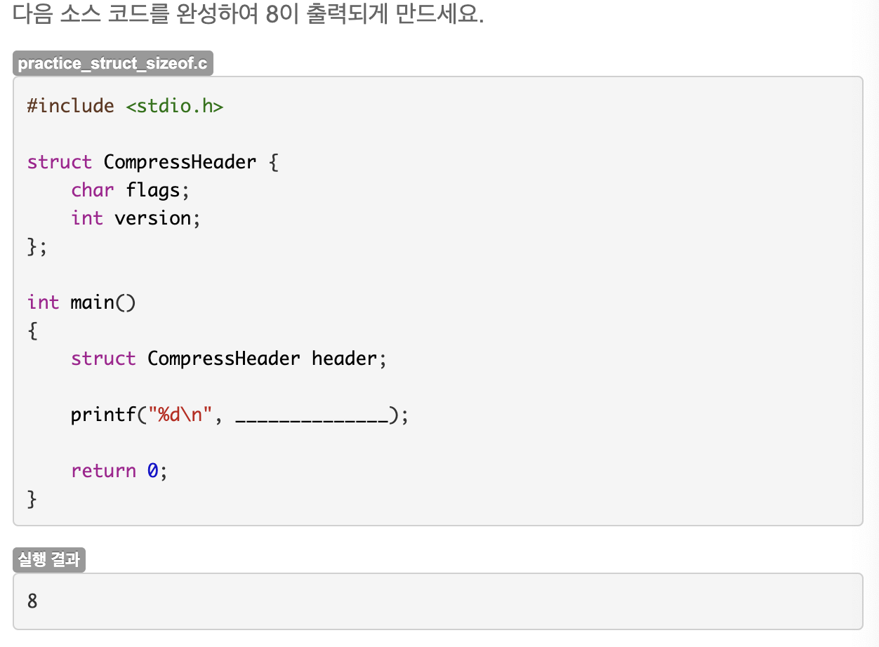 - sizeof(struct 구조체)