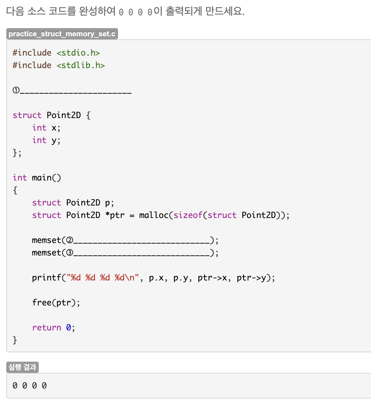 3. ptr, 0, sizeof(struct Point2D)
