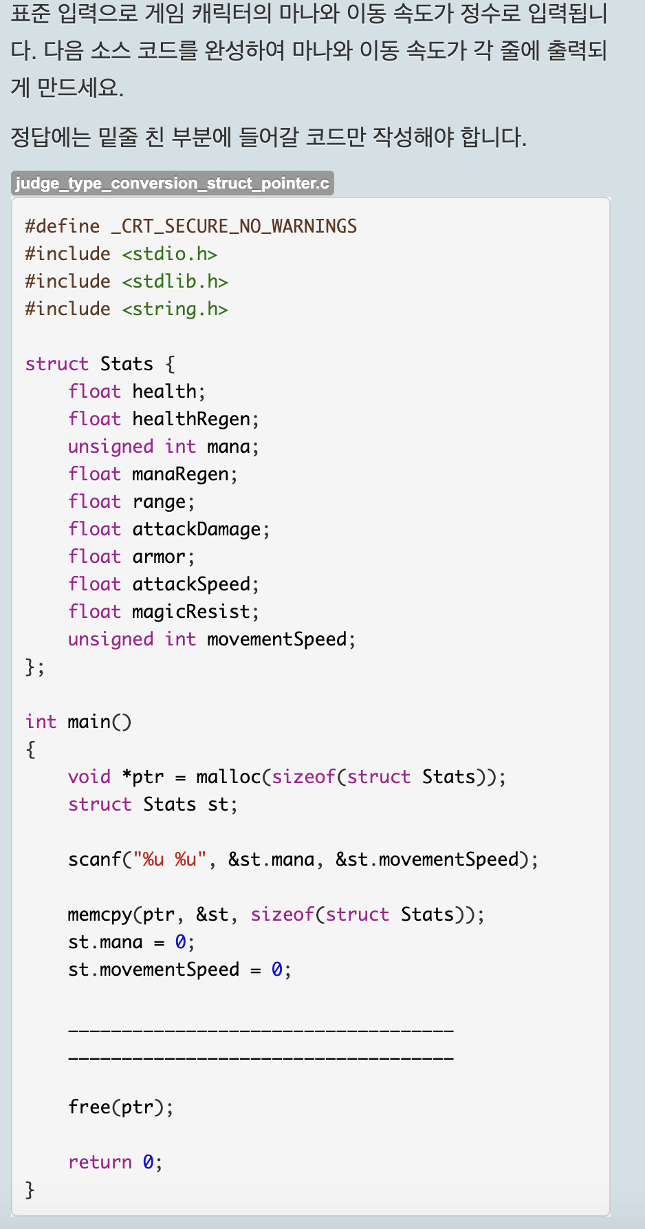 void 포인터이므로 Stats 구조체 포인터로 변환하여 각 멤버에 접근해야 한다.