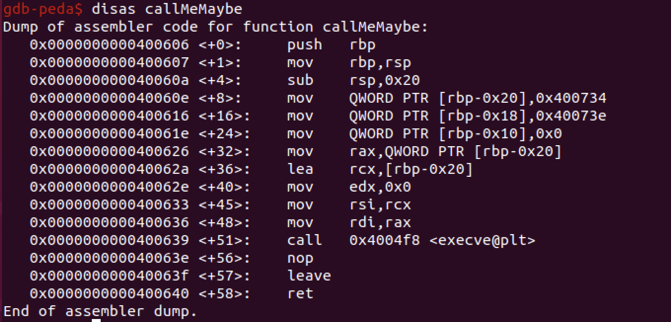 execve 함수가 사용됨을 확인할 수 있고, main함수 말고, callMeMaybe 함수도 있는것을 확인할 수 있다.
