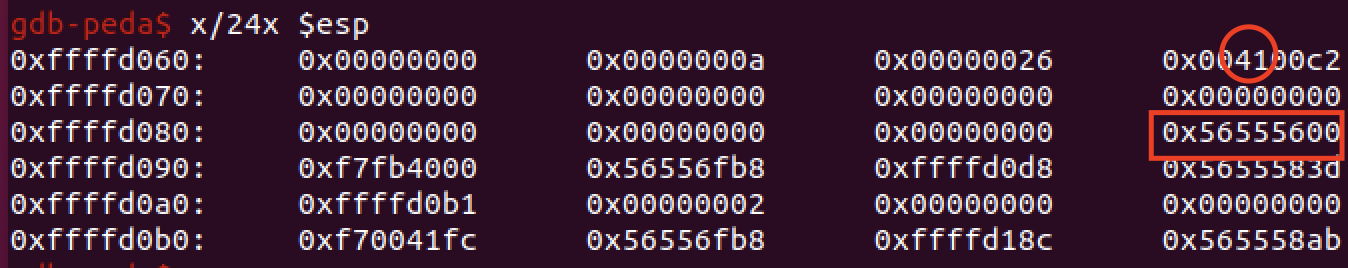 현재 스택에서 입력한 값의 위치와 eax에 저장된 0x56555600의 위치는 다음과 같다.