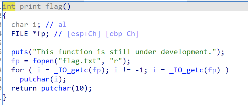 최종적으로 실행해야 할 함수는 flag.txt를 읽어오는 print_flag()함수인 것 같다.