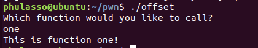 실제로 바이너리를 실행하고 one을 입력하면 one함수가 실행됨을 확인할 수 있다.