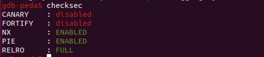 gdb에서 checksec명령으로 적용된 보호기법을 보면 NX, PIE, RELRO보호기법이 적용된 것을 확인할 수 있다.
