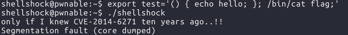 system 함수로 bash 셸 스크립트로 shock_me를 출력하고 있다. 문제 설명에도 나와 있듯이 bash에 관한 취약점인것 같아서 bash 취약점을 키워드로 검색해보니 bash shellshock 취약점을 찾을 수 있었다.