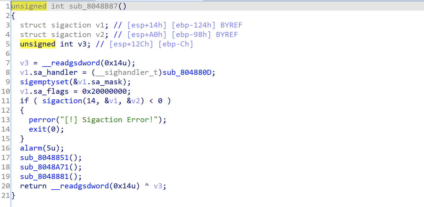 main 함수에서 호출하고 있는 sub_8048B87() 함수를 확인하면 다음과 같다.