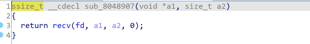 인자로 넣은 v2와 100을 a1, a2로 하여 recv 함수로 반환하고 있다.