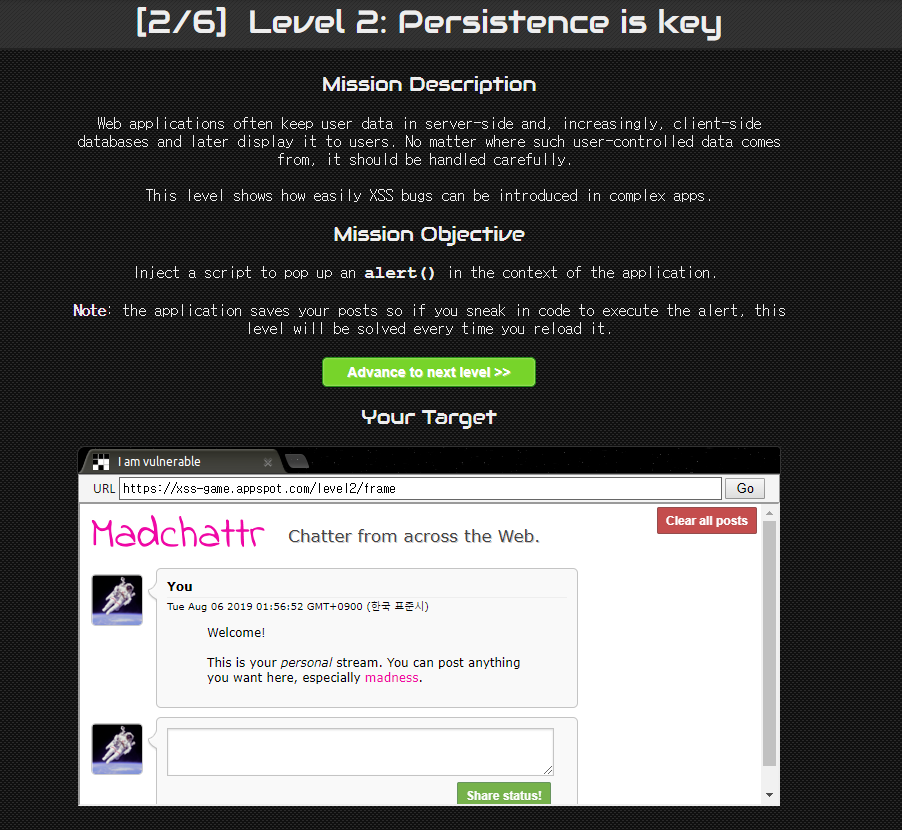 | [XSS game] Level 1 (0) | 2019.08.06 |