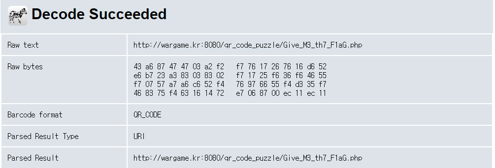 https://zxing.org/ 라는 사이트에서 qrcode decode를 할 수 있다.