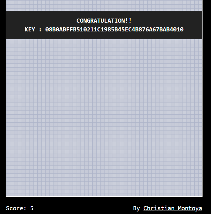 전체 코드를 웹 페이지의 콘솔창에 입력한 후 게임을 실행하면 게임오버시 플래그를 얻을 수 있다.