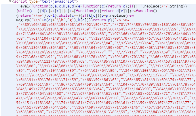 소스코드를 보면 다음과 같이 난독화된 자바스크립트 코드를 확인할 수 있다.