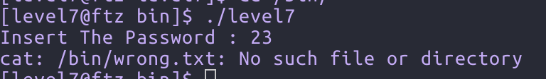 level7 을 실행해보면 wrong.txt가 존재하지 않는다는 메시지가 나오면서 문제를 더이상 진행할 수 없다.