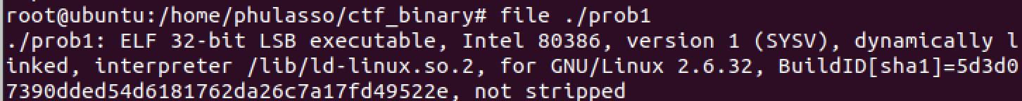 file 명령으로 파일을 확인해보면 32비트 리눅스 실행파일임을 확인할 수 있다.