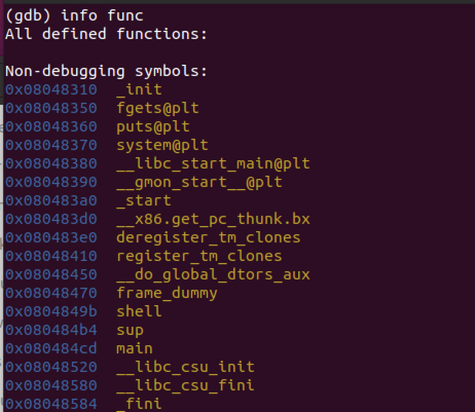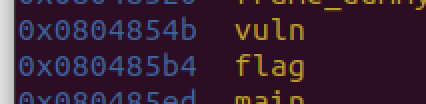 vuln 함수와 flag 함수의 주소는 다음같다.