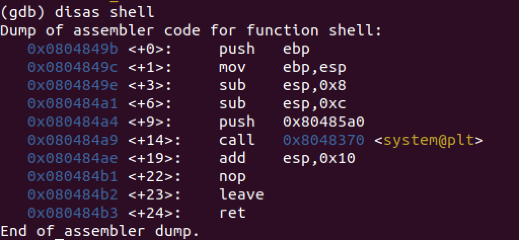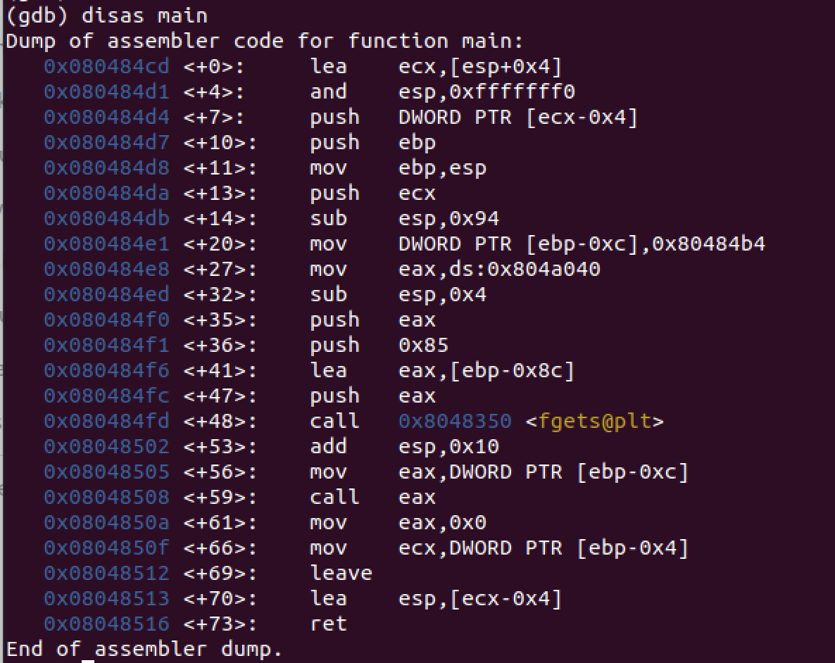 스택에 eax(0x804a044) 값을 넣어주고, setvbuf 함수를 실행하고 있다.