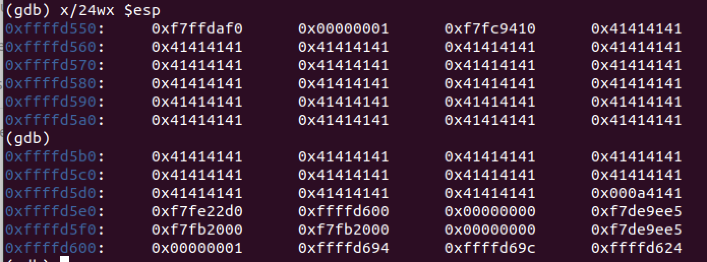 2번째 포맷스트링부터 입력한 AAAA가 들어가고 있다.