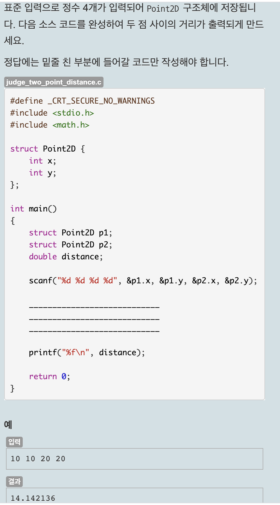 50.3 심사문제 : 두 점 사이의 거리 구하기