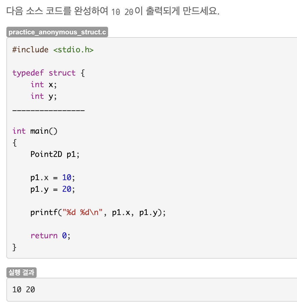 typedef struct 뒤에 이름을 지정하지 않고 바로 여는 중괄호로 시작하면 된다.