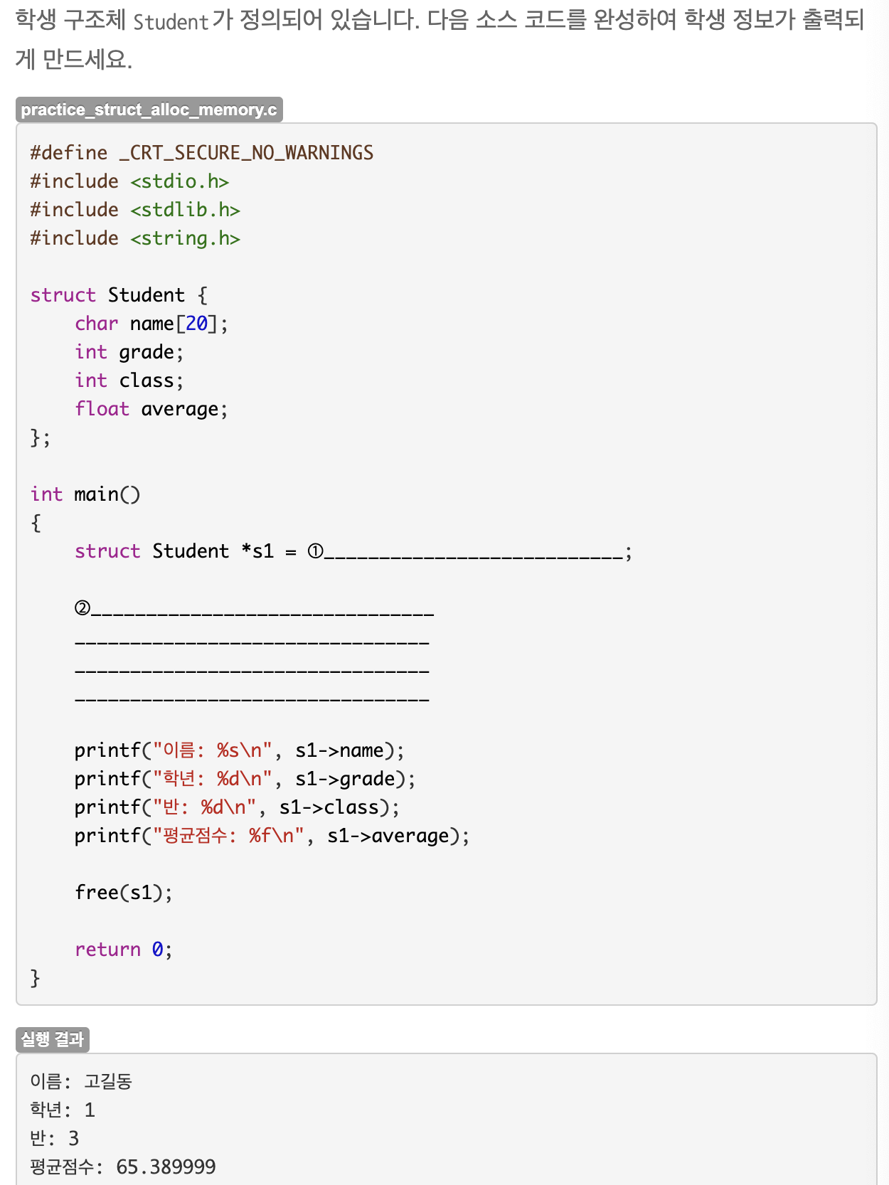 49.5 연습문제 : 학생 구조체 포인터에 메모리 할당하기