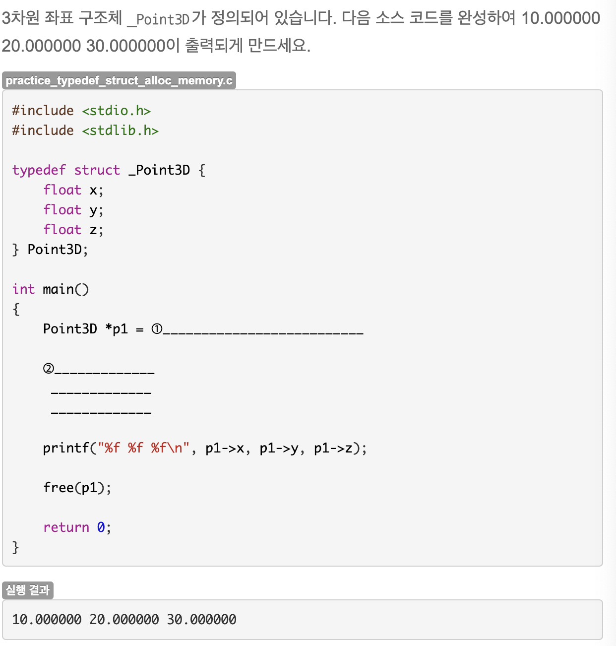49.6 연습문제 : 3차원 좌표 구조체 포인터에 메모리 할당하기