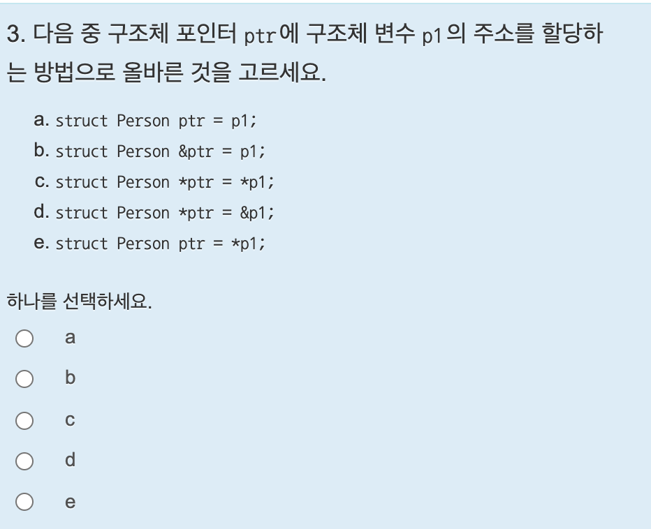 49.9 심사문제 : 구조체 포인터에 구조체 변수의 주소 할당하기