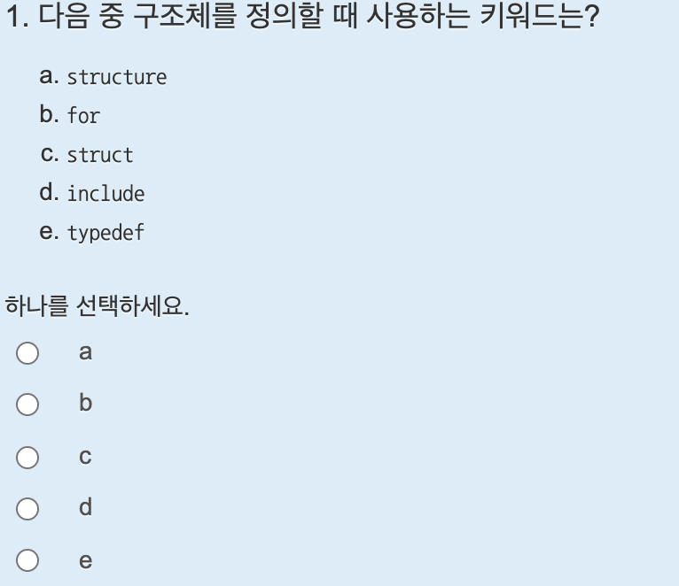정의한 구조체를 사용하려면 구조체 변수를 선언해야 하며 구조체 이름 앞에 struct 키워드를 붙여줘야 한다.