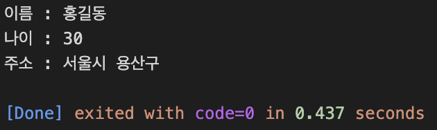 printf("주소 : %s\n", p1.address);